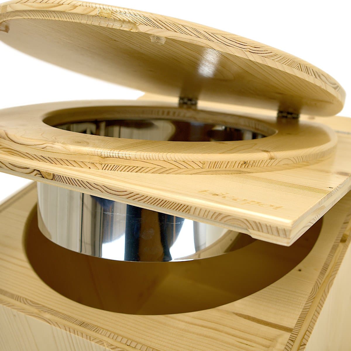 - Design sobre et élégant : s’intègre parfaitement avec le bois et tous les styles de toilettes sèches.